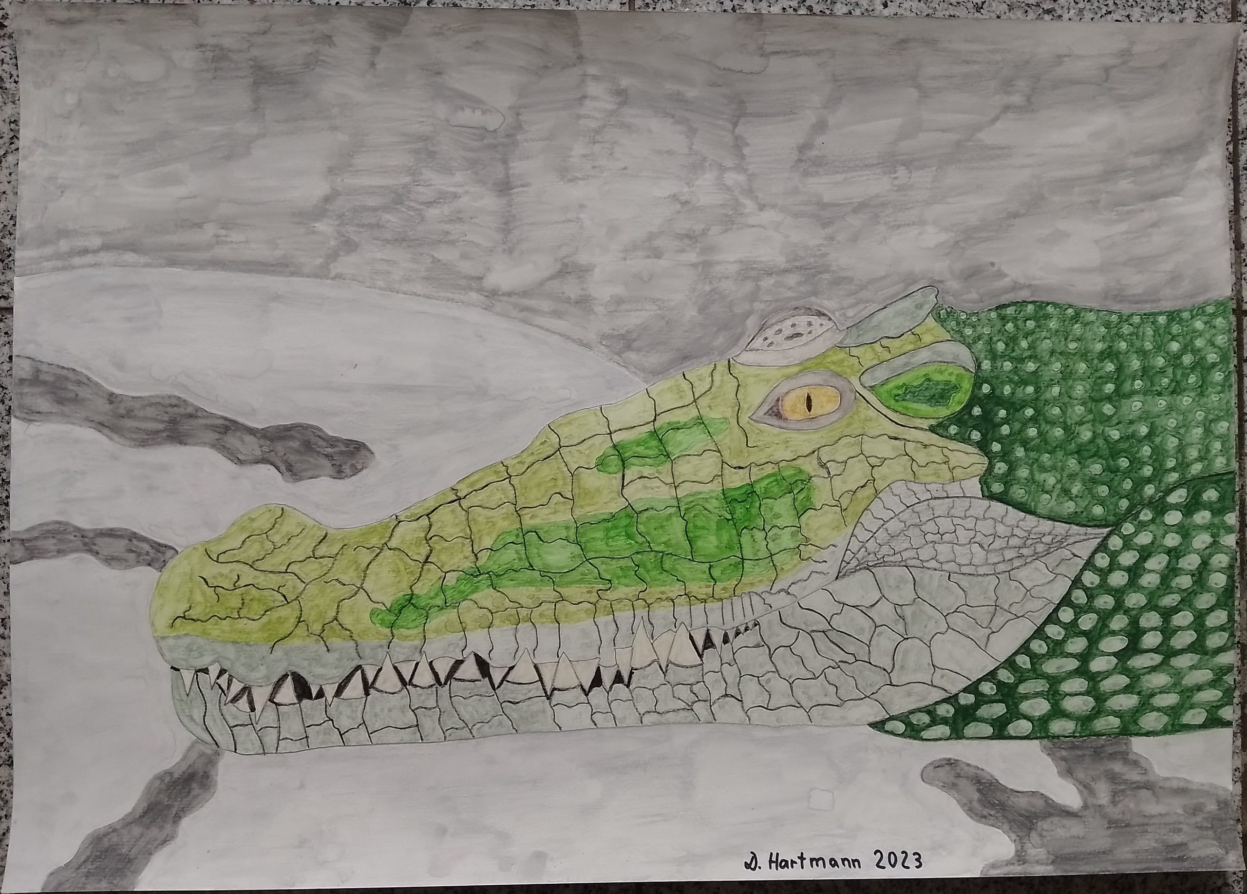 Salzwasserkrokodil 42×59,4cm 2023 -