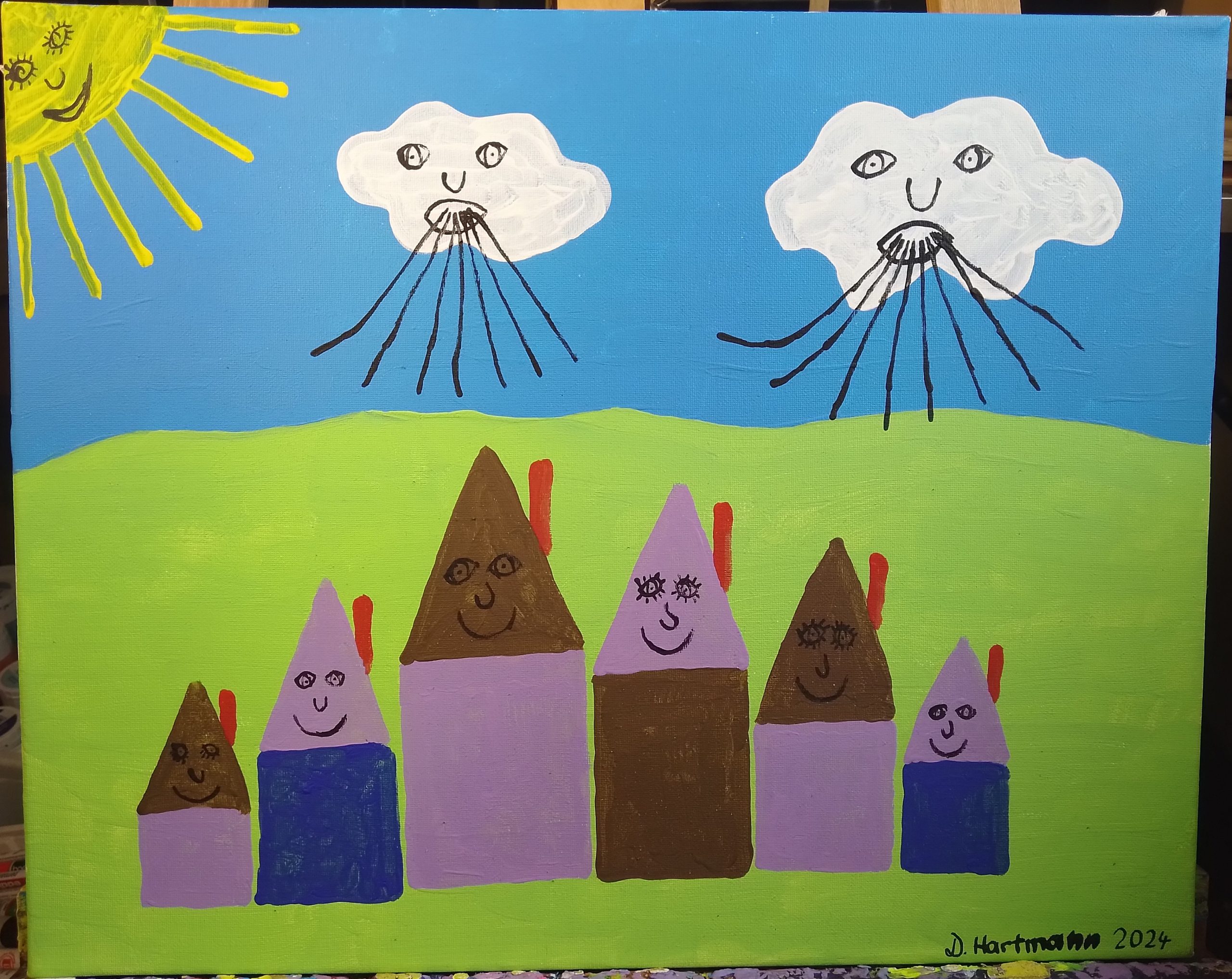 Sonne,Wind und die Familie Haus 40x50cm 2024 -