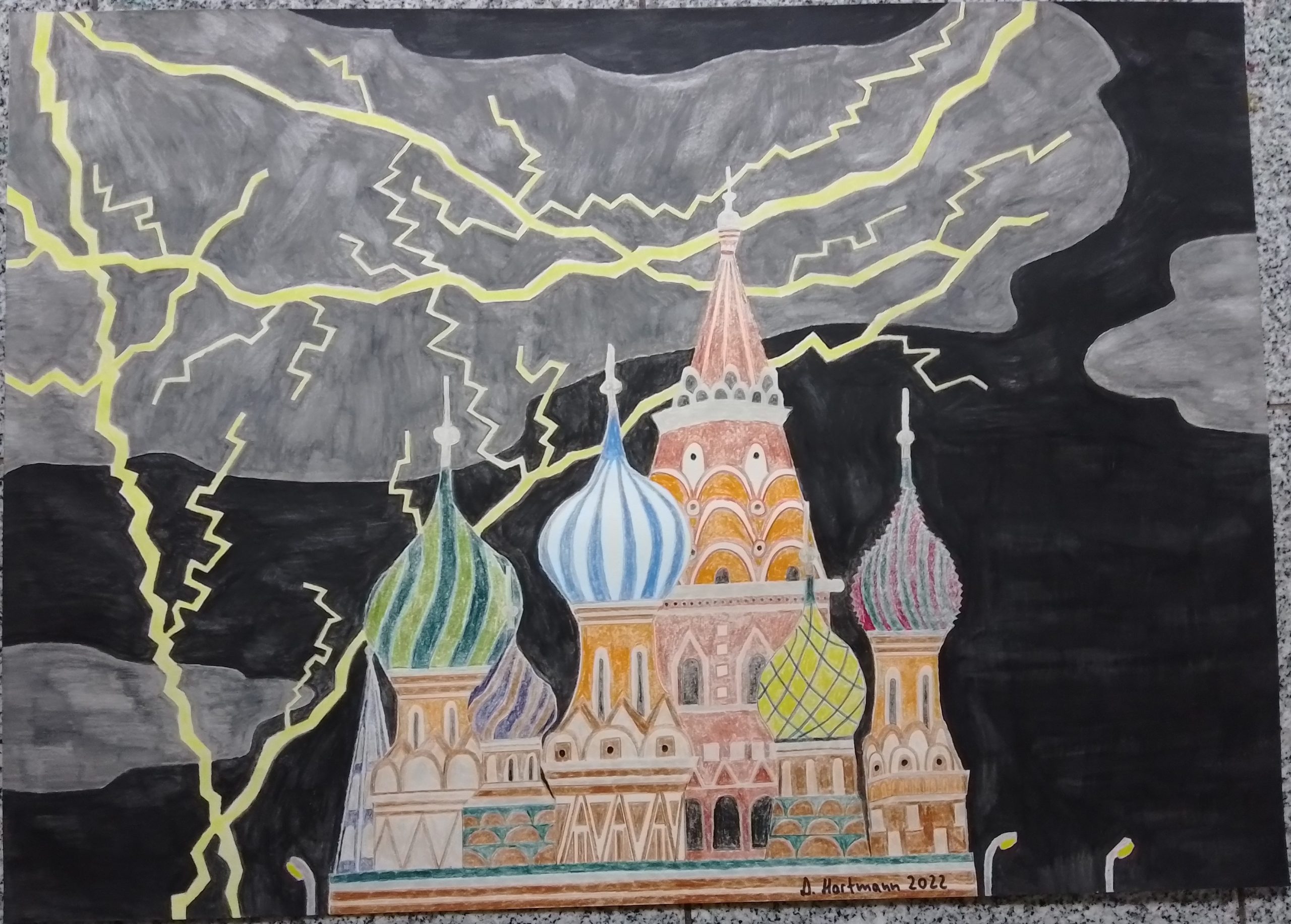 Spektakulärer Blitz über dem Kreml 50x70cm 2022 -