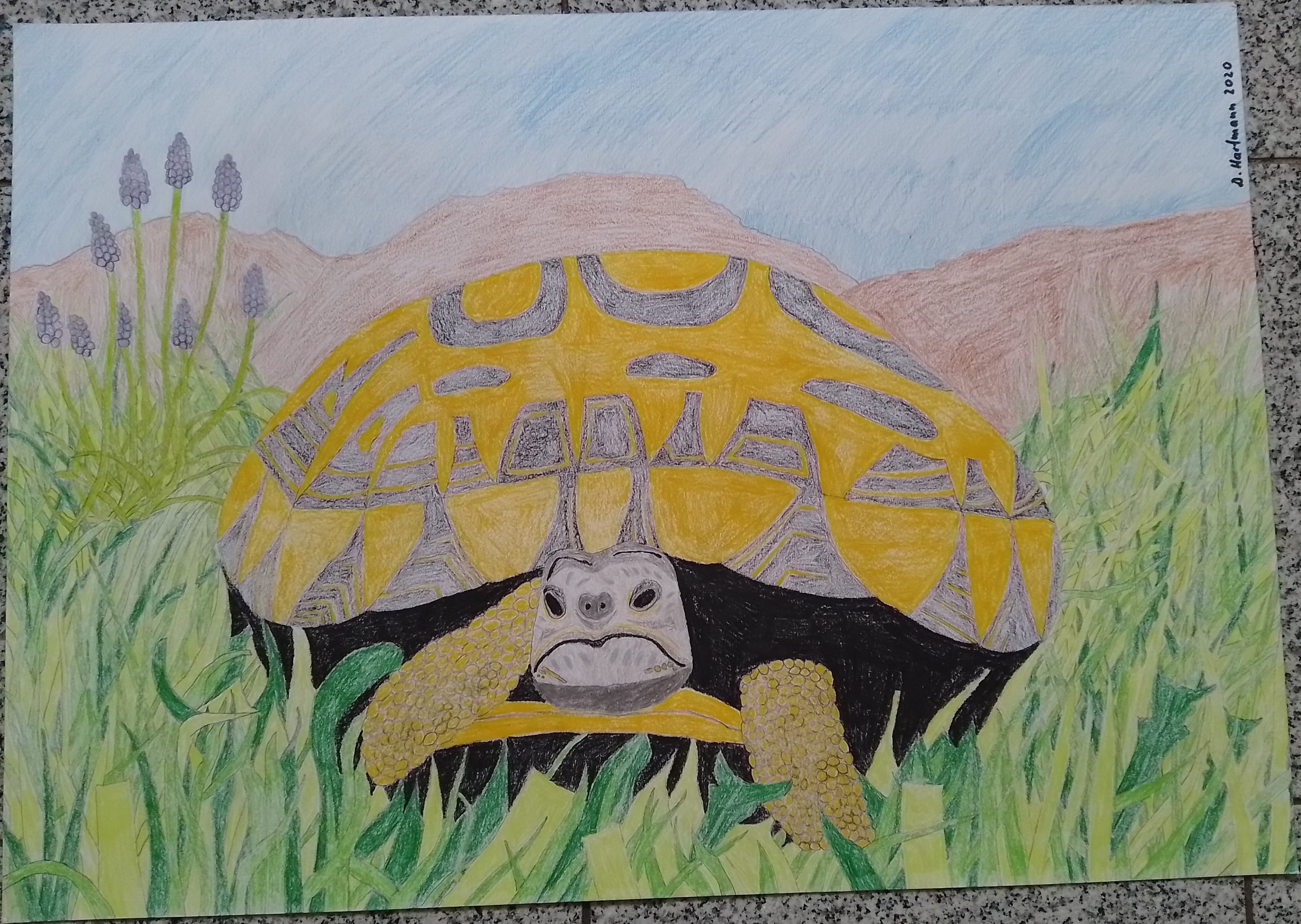 Die angefressene Schildkröte in krautigen Pflanzen 42×59,4cm 2020 -