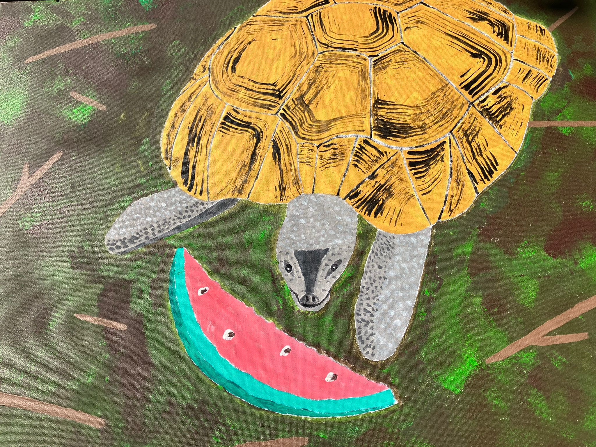 Schildkröte Horus mit Wassermelone 50x70cm 2022 -