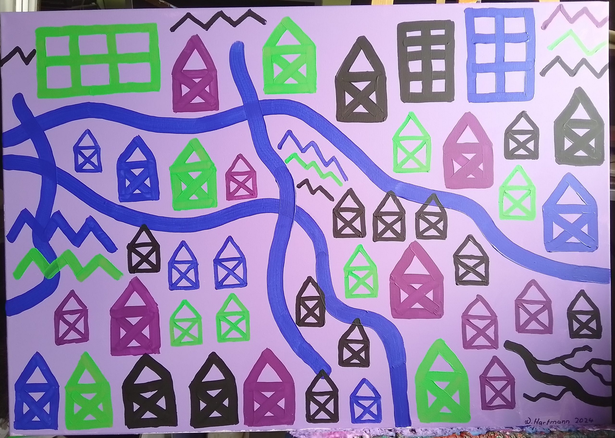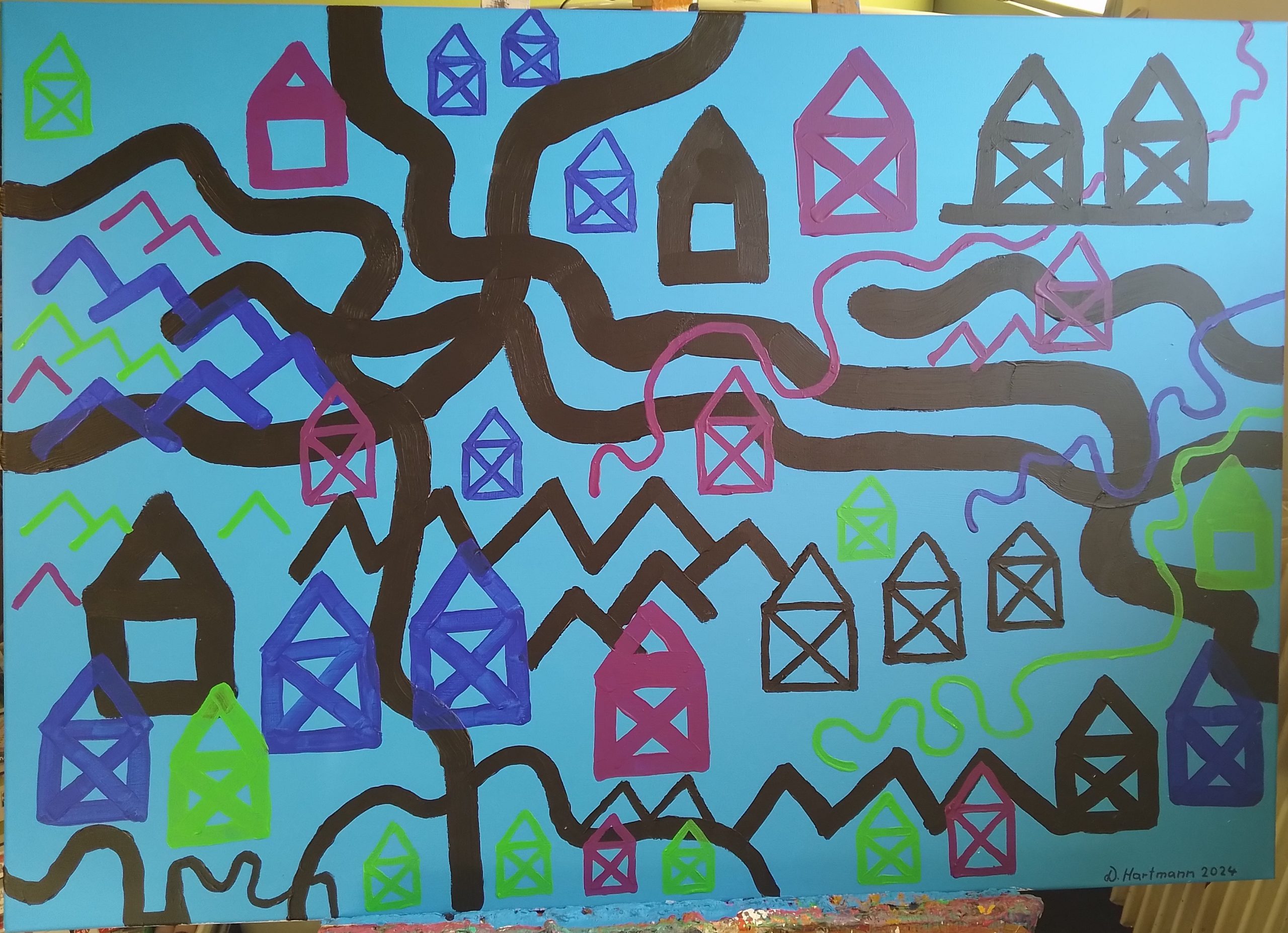 Die Familie Haus lässt Dampf ab 40x50cm 2024 -